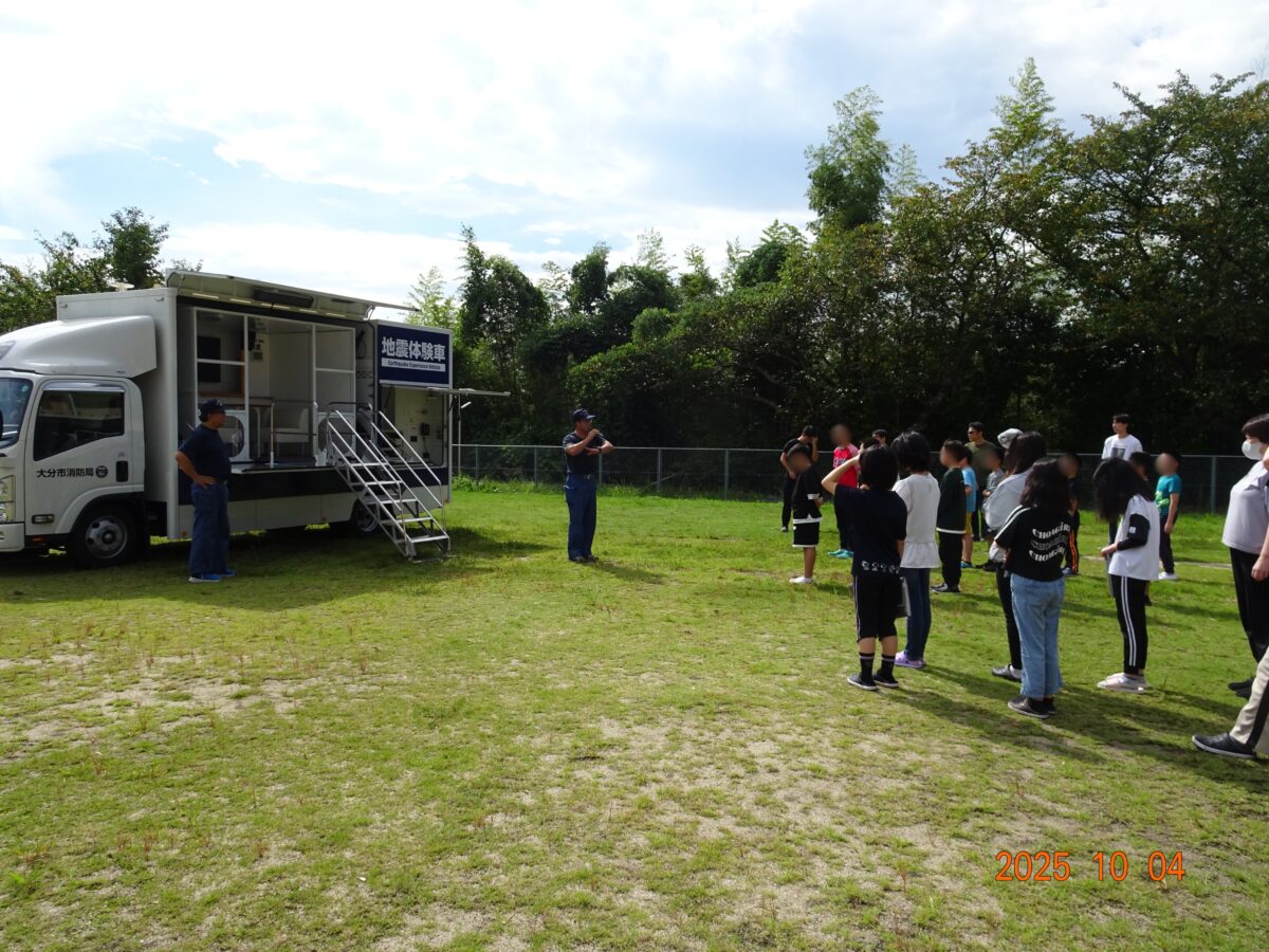 地震体験車が来てくれて、揺れを体験しました。 地震の揺れ、怖さを体感したね…!