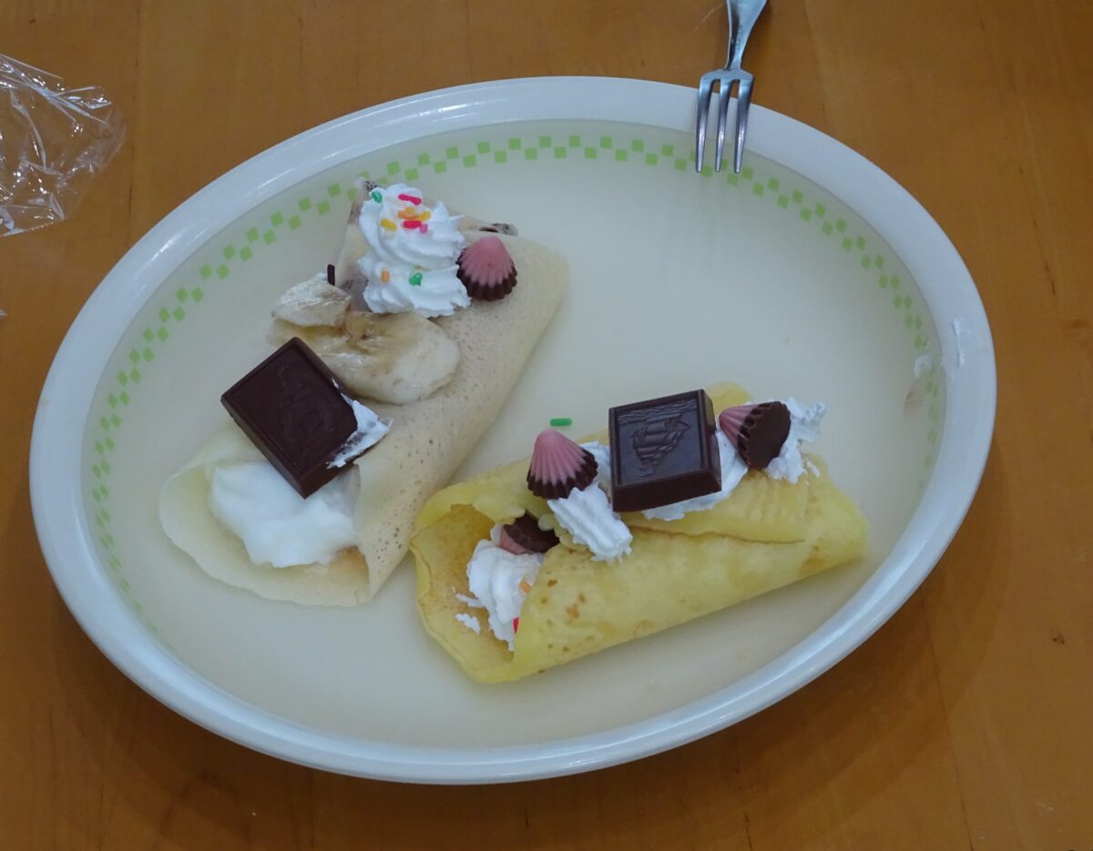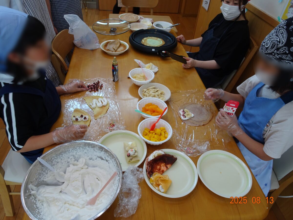 夏休み中はたくさん調理実習をしました!その1つが虹色クレープ作り!自分の好きな具材入れて美味しそうなクレープが完成!